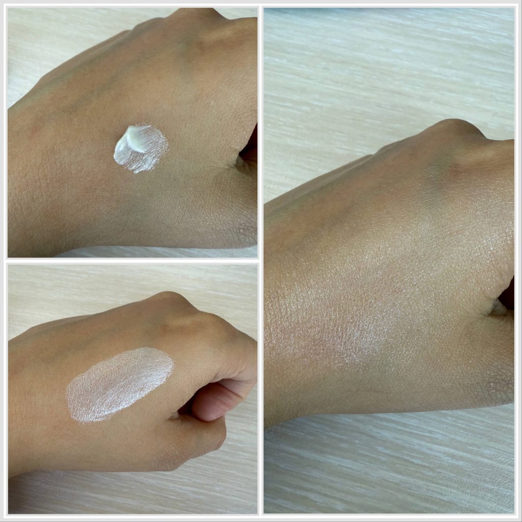 The texture is lightweight and liquid, making it easy to blend on the skin. It feels comfortable to wear and does not emphasize texture or pores. However, it is quite shimmery you can clearly see small shimmer particles once it’s applied. This takes away from the natural glow effect and can make it look a bit artificial in daylight.